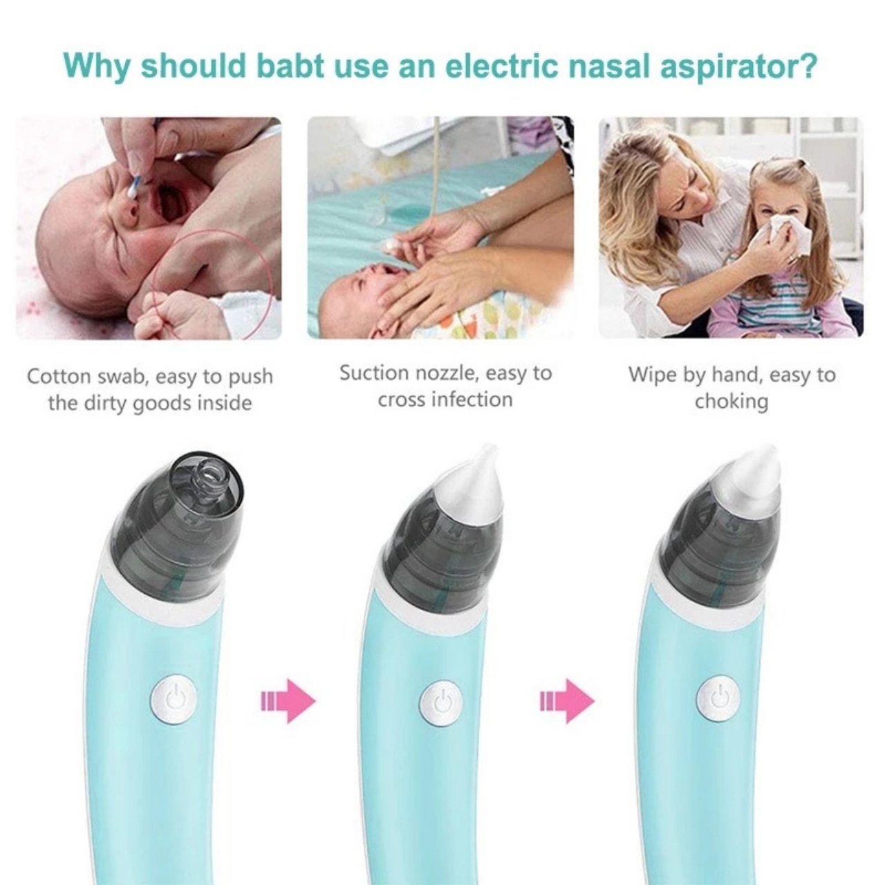 | În pachet: | 1x aspirator nazal, 2x atașamente din silicon de dimensiuni diferite, 8x bureți pentru curățare ușoară, 1x cablu de încărcare USB |