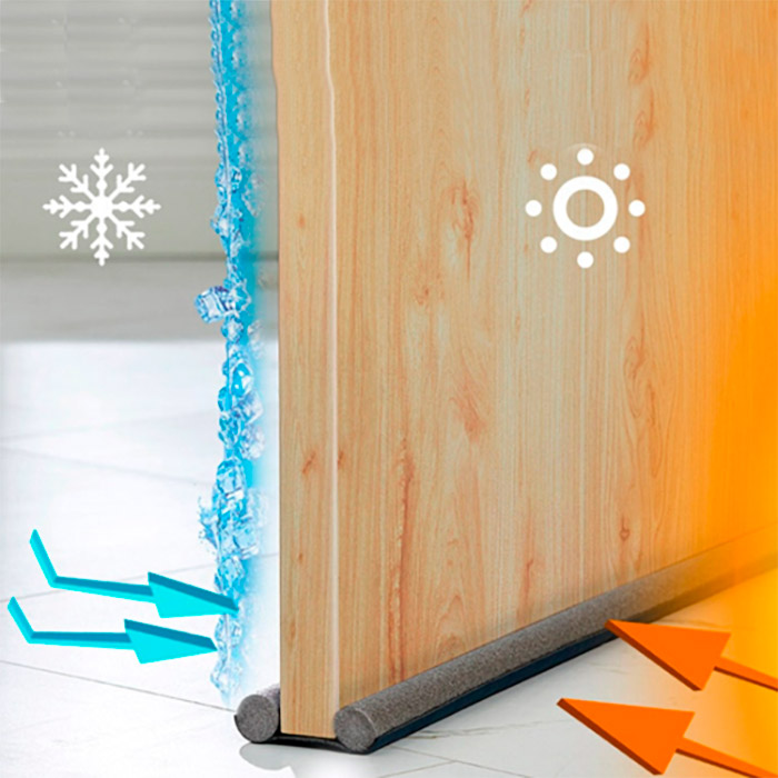 DoorStopper previne eficient scăparea aerului rece sau cald prin crăpătura de sub ușă. Acest lucru menține camera la o temperatură confortabilă și reduce consumul de energie pentru încălzire sau răcire. Este potrivit pentru toate anotimpurile și asigură că nici cel mai mic curent de aer nu intră în casa dumneavoastră.