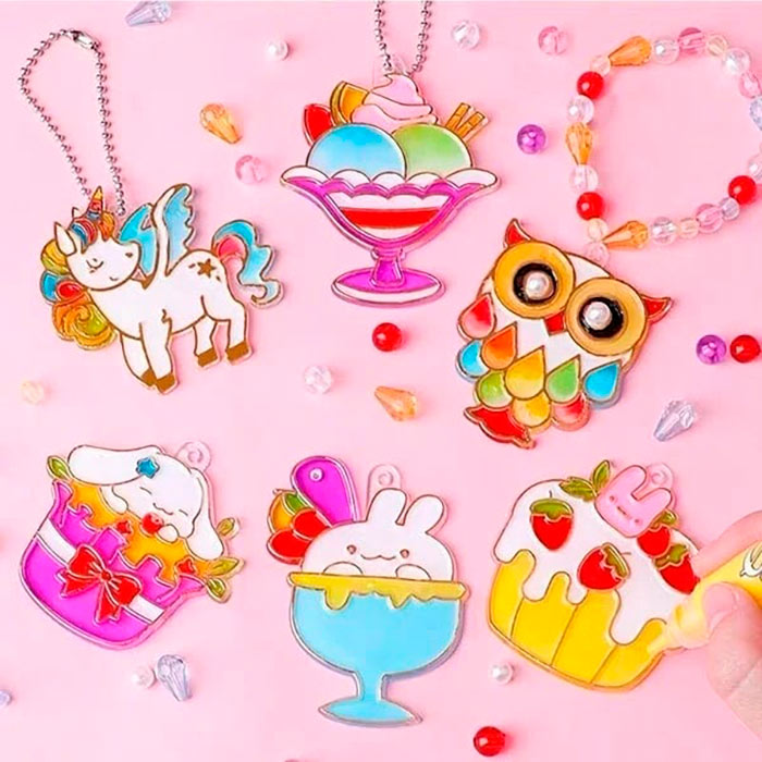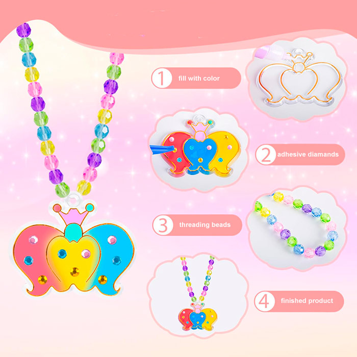 Acest set bogat de pandantive conține 6 modele, 6 culori diferite, 6 lanțuri pentru pandantive, 1 pensetă, 1 pachet de diamante, 1 pachet de mărgele colorate și 1 șnur mai lung!