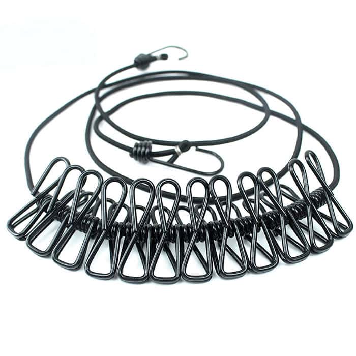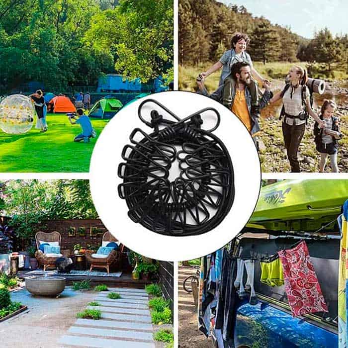 Sfoara pentru rufe este extrem de elastică, întinzându-se de la 175 la 300 cm! Funia este portabilă, iar cu ajutorul a 2 cârlige metalice o poți așeza oriunde vrei – în baie, între copaci, pe cârlige, între ferestre, în living sau pe balcon!