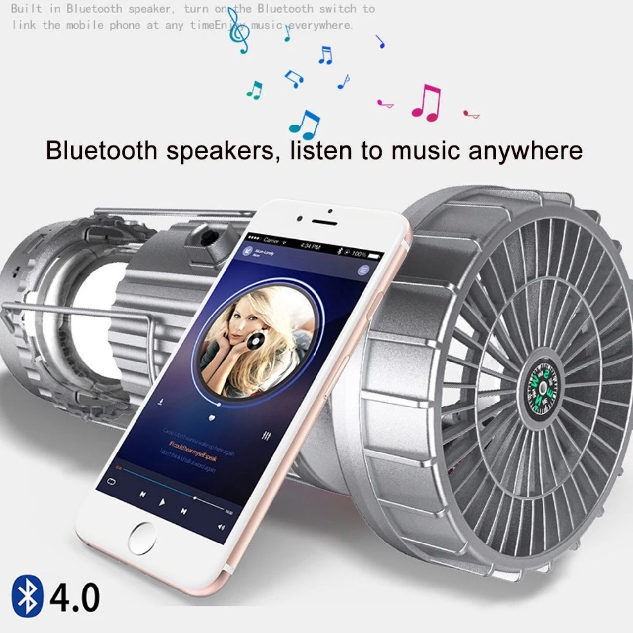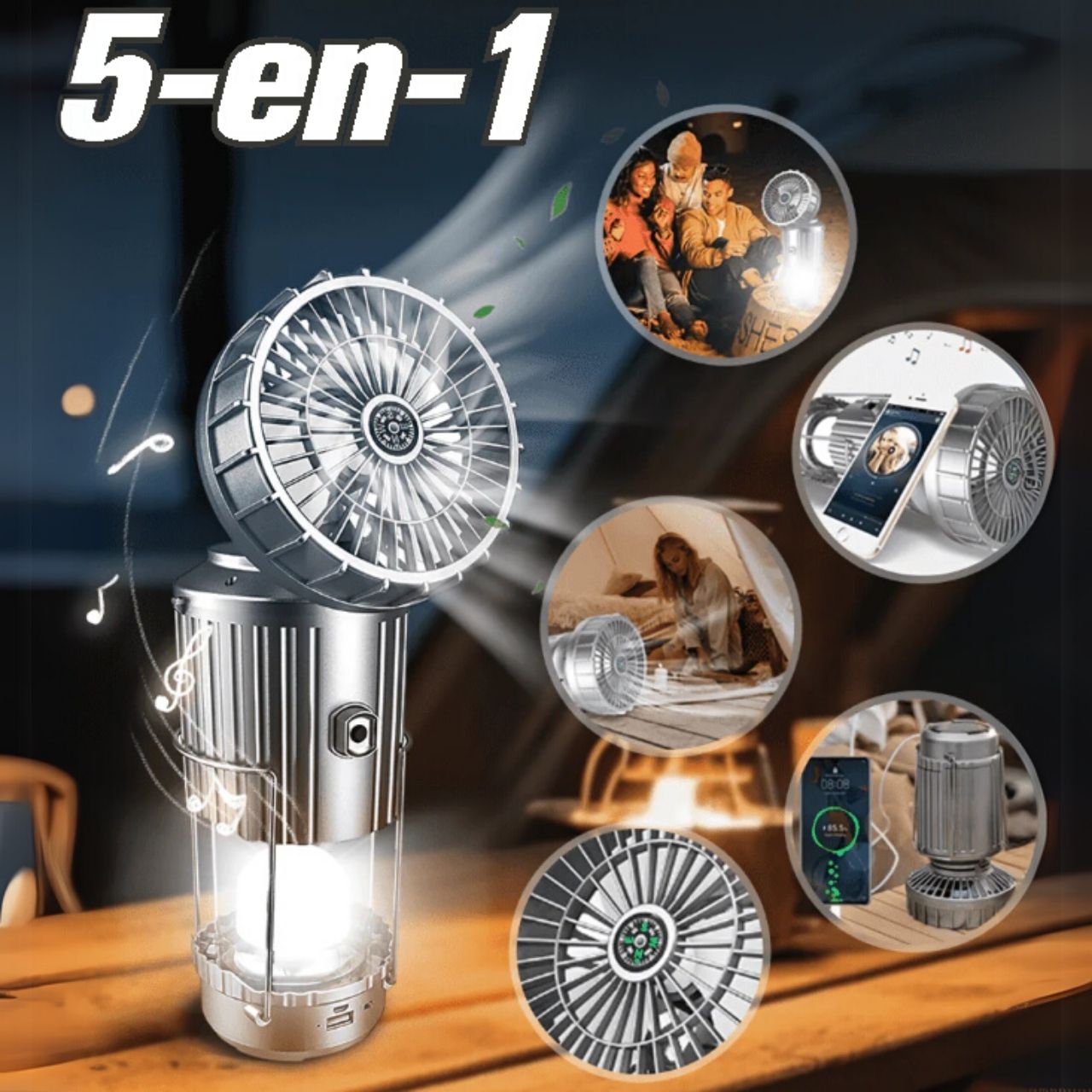 - 5 funcții într-un dispozitiv: lanternă, ventilator, difuzor Bluetooth, busolă și baterie powerbank – tot ce ai nevoie într-un singur dispozitiv