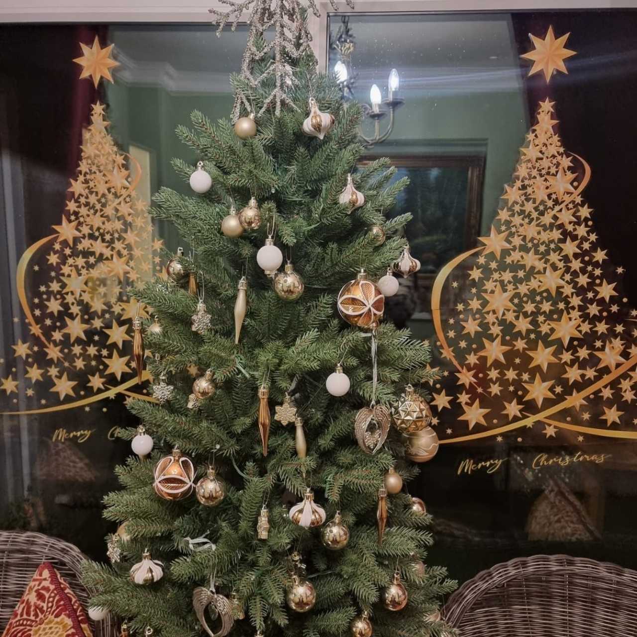 Dacă nu ai loc pentru un brad de Crăciun, aceste autocolante elegante aurii vor fi o alternativă minunată. Pur și simplu așază-le pe sticlă, o oglindă sau o vitrină și creează instantaneu o atmosferă festivă. Cu "Crăciun Fericit" și un design strălucitor, vor aduce căldură și strălucire în fiecare colț.
