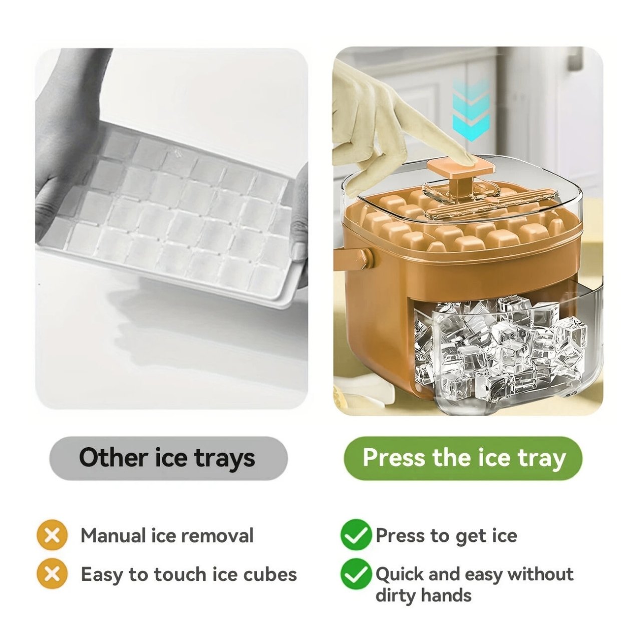 Toarnă apă în recipient și închide capacul. Așază în congelator suficient timp pentru a forma gheață. Odată înghețată, apasă butonul de sus și cuburile de gheață vor fi eliberate în recipientul de jos. Nu expune la căldură directă. Se recomandă curățarea înainte de prima utilizare. Nu este potrivit pentru utilizare în cuptorul cu microunde.
