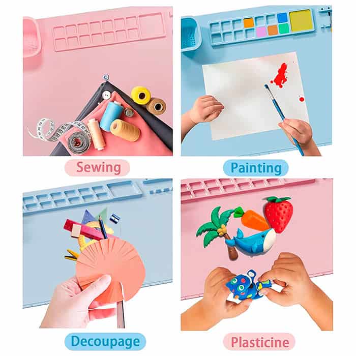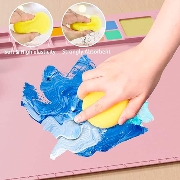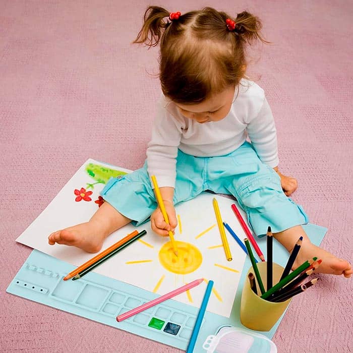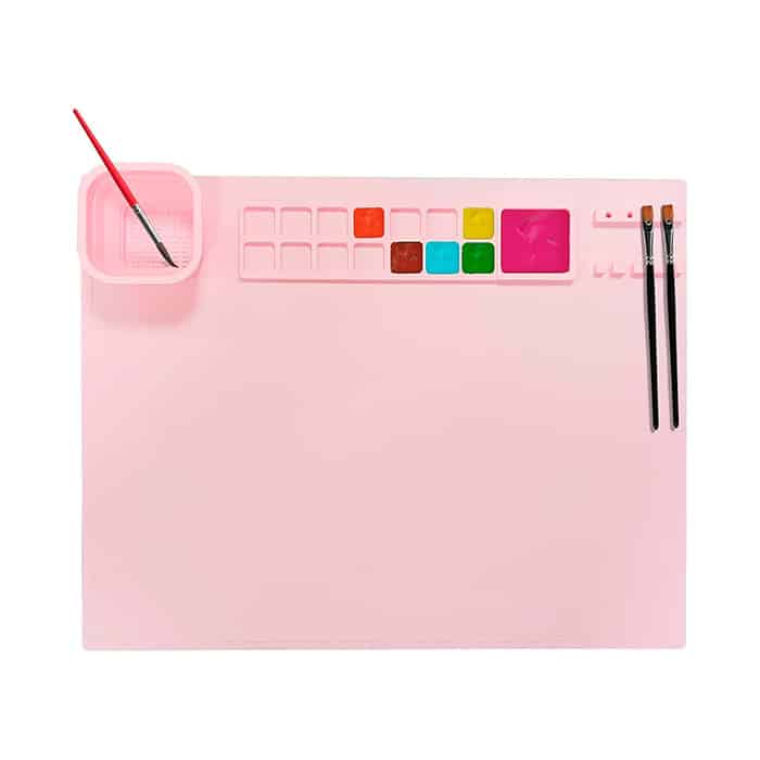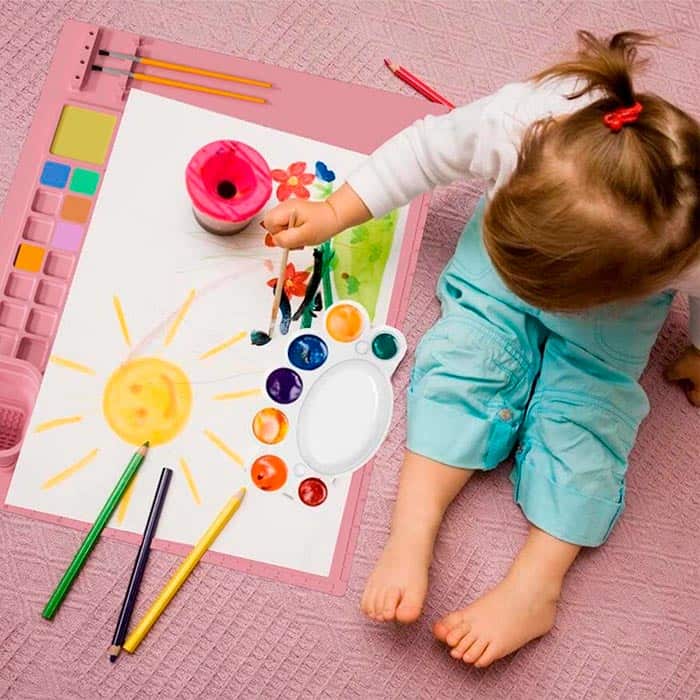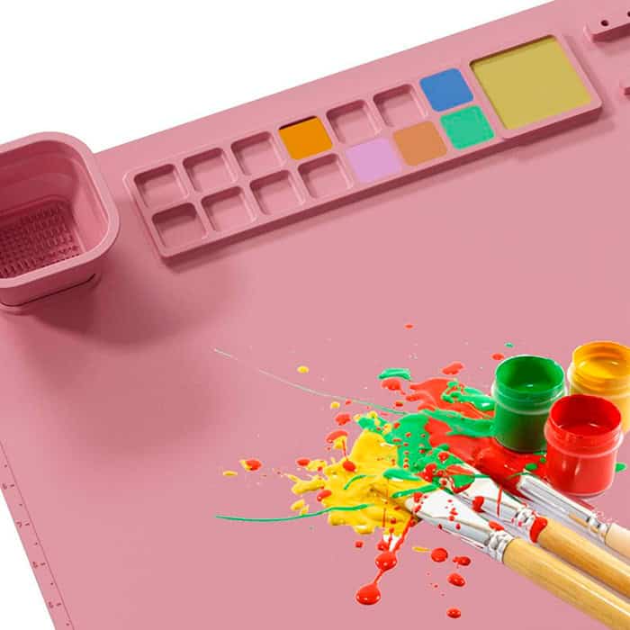 Mată creativă din silicon cu spații pentru vopsea, apă și pensule va proteja perfect suprafața în timp ce copiii tăi creează cu ușurință!