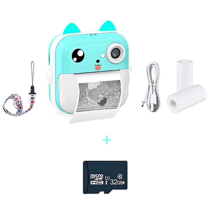 | În pachet: | 1x cameră, 1x cablu USB, 2x rolă de printare, 1x curea de încheietură, 1x card Micro SD de 32 GB |