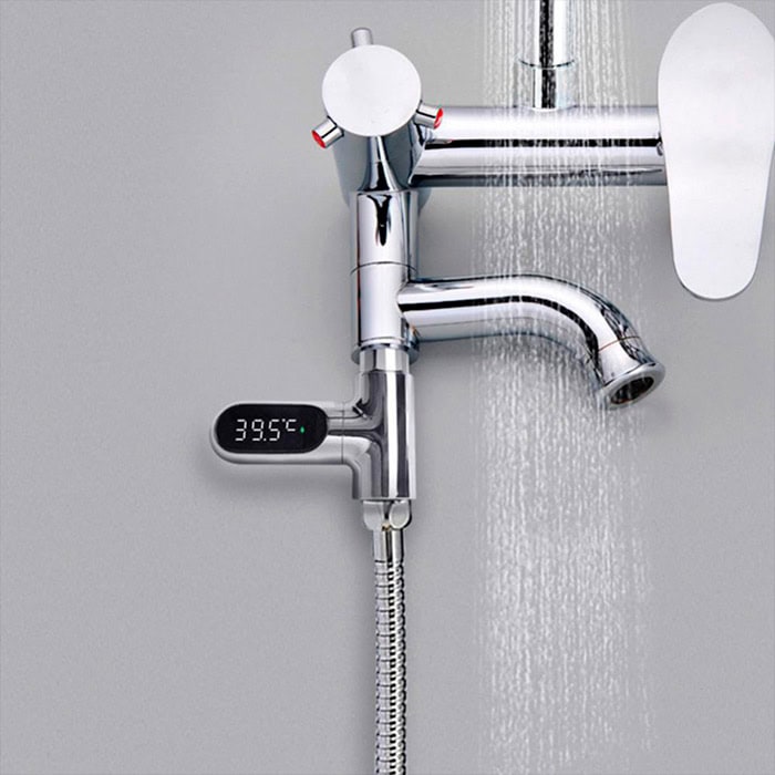 Pur și simplu instalați termometrul de duș între baterie și furtun și va funcționa folosind energia din fluxul de apă!