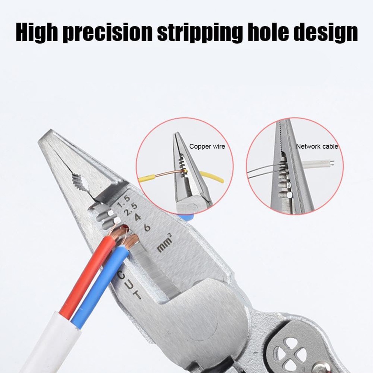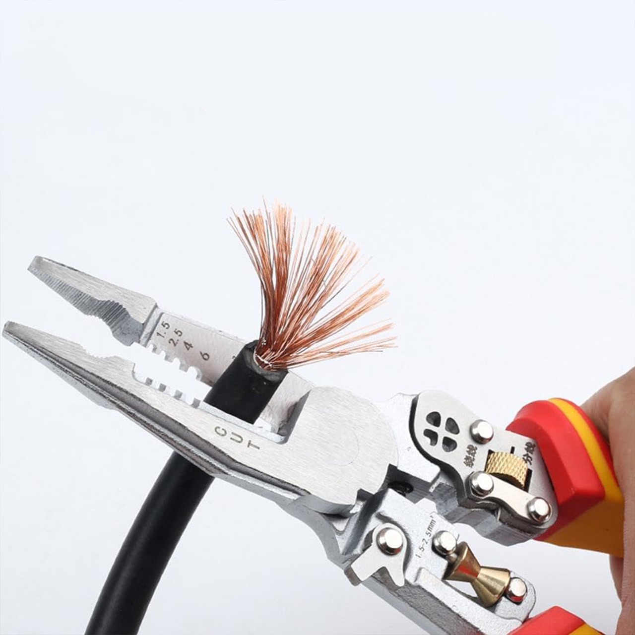 Un instrument indispensabil pentru amatorii de bricolaj și profesioniști deopotrivă! Cu acești clești multifuncționali poți tăia, decoji, strânge și chiar măsura tensiunea. Construcția robustă și mânerele ergonomice asigură o utilizare sigură și confortabilă, în timp ce funcțiile integrate permit lucrul rapid și precis.