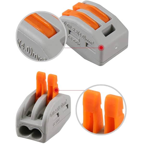 Încă folosești bandă izolatoare și conexiuni de cablu periculoase? Avem o modalitate mai bună pentru tine de a face conexiuni electrice cu ușurință! Conectorul de cablu cu două pini conectează firele instantaneu! Pur și simplu introdu cablul și blochează-l pentru a-l asigura!